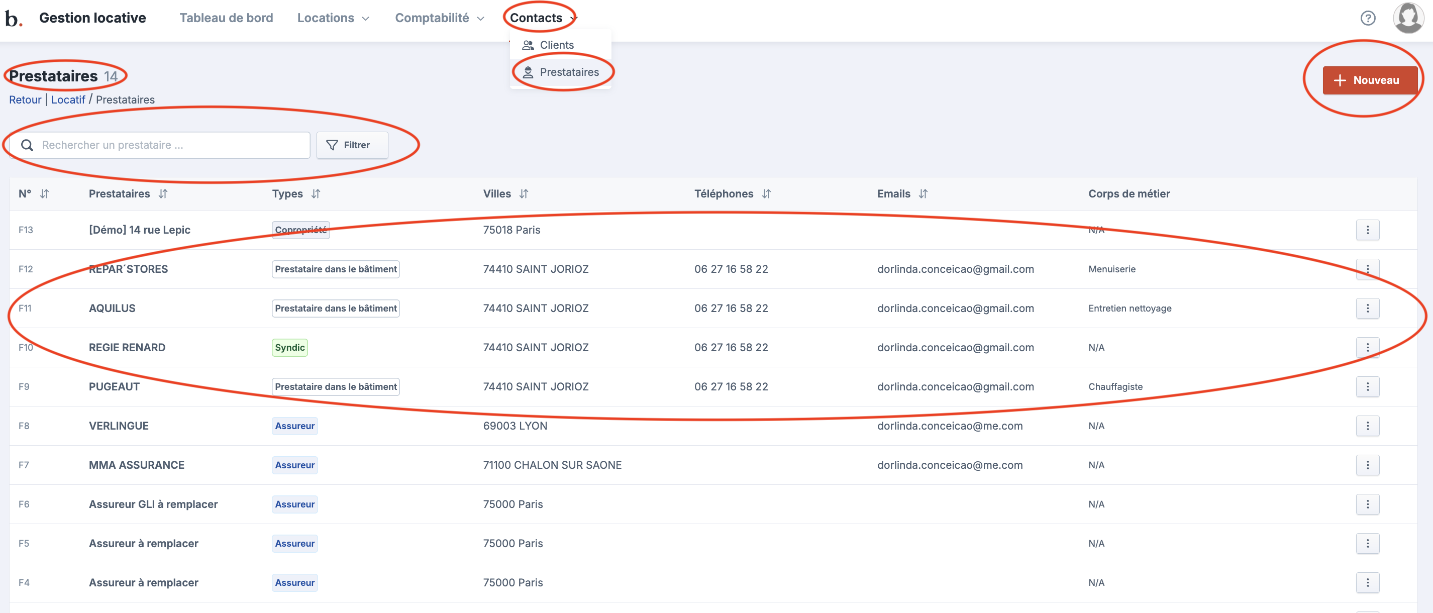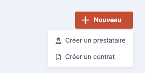 Ou Cliquez sur “+ Nouveau " en haut à droite pour "ajouter un nouveau contrat au prestataire"