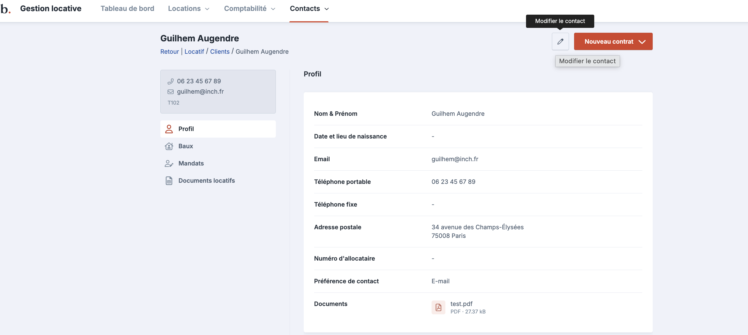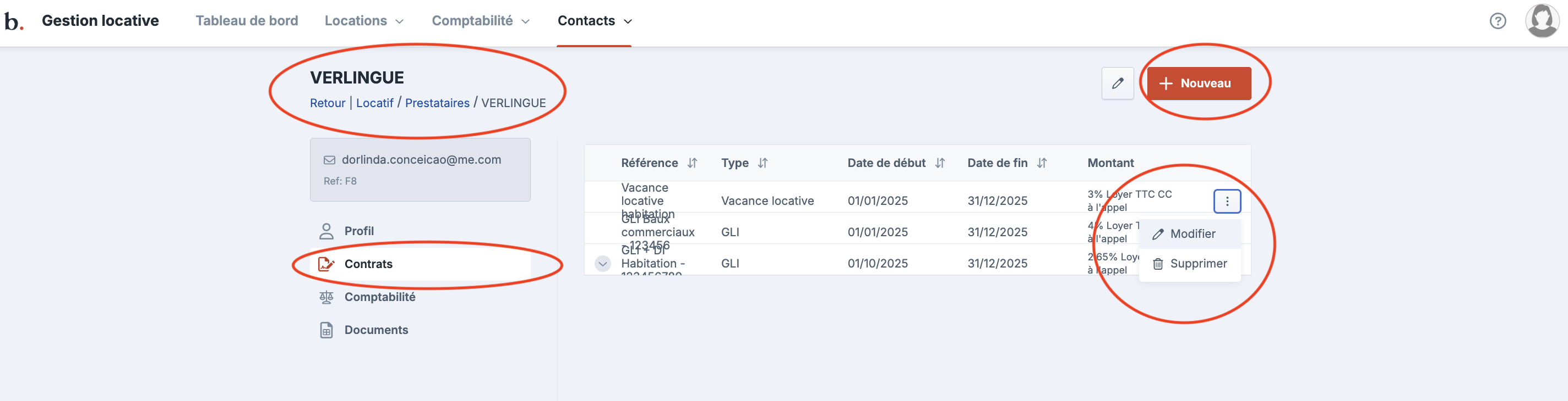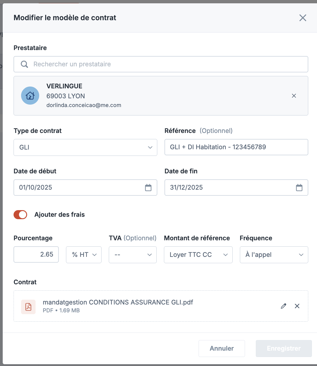 Modifier un contact ou un prestataire