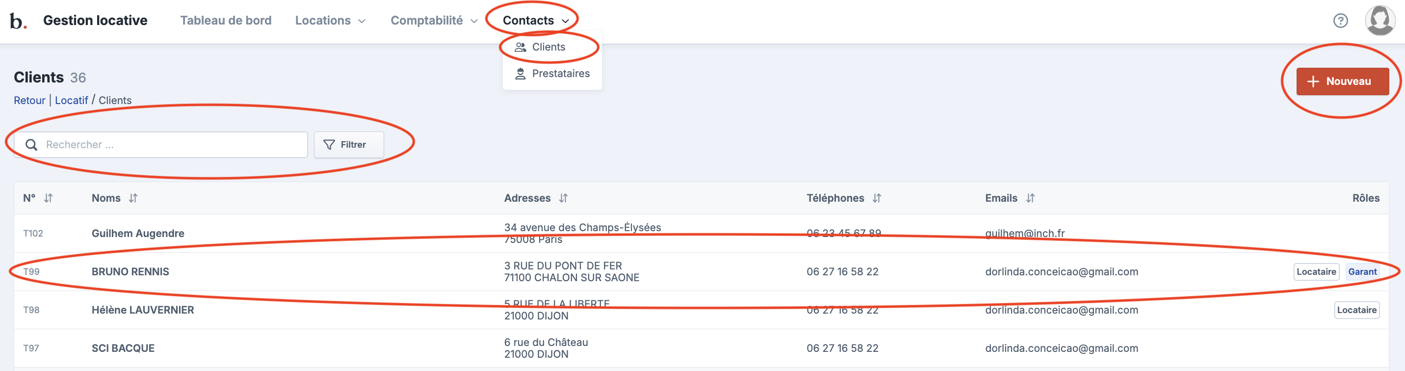 Créer un locataire / un bailleur / un garant