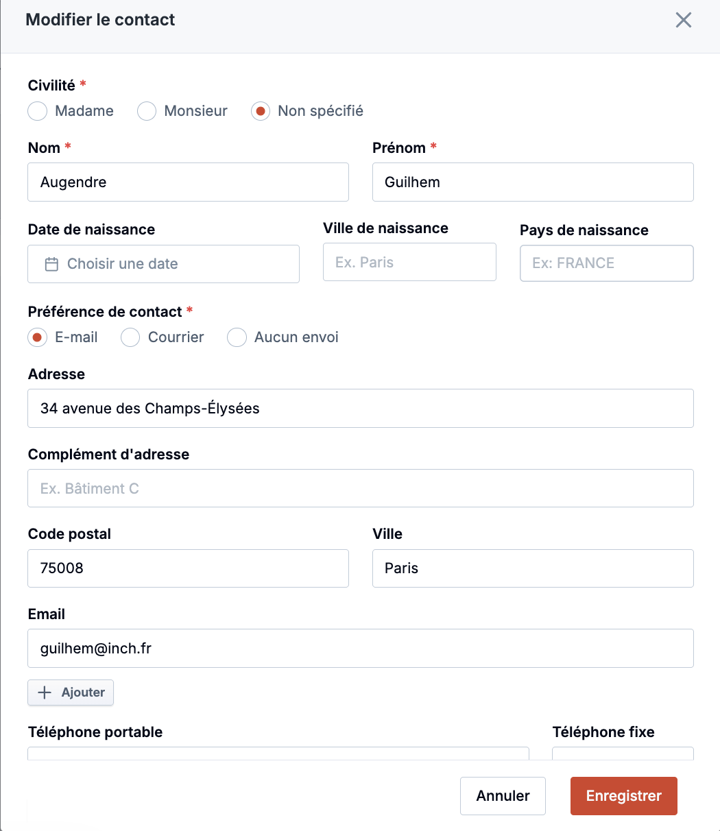 ℹ️ le formulaire s’adaptera si votre contact est une personne morale ou une personne physique.