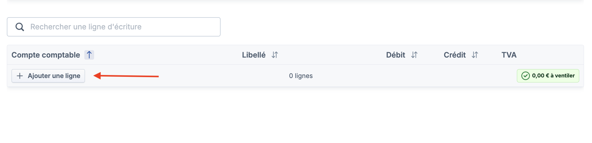 Sélectionner les comptes comptables à "débiter" et "créditer" en cliquant sur "Ajouter une ligne".