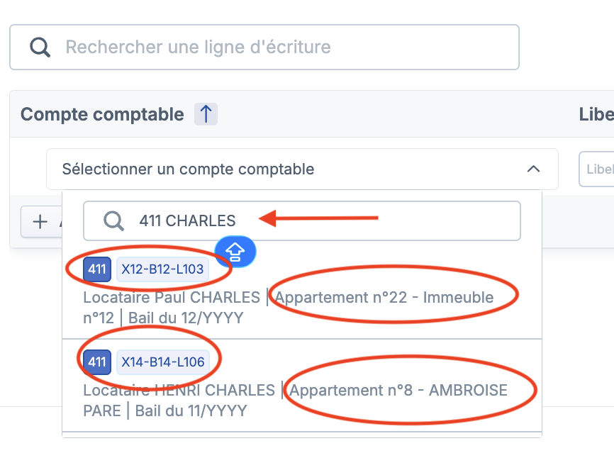 "411 Locataire" montant au "Crédit"