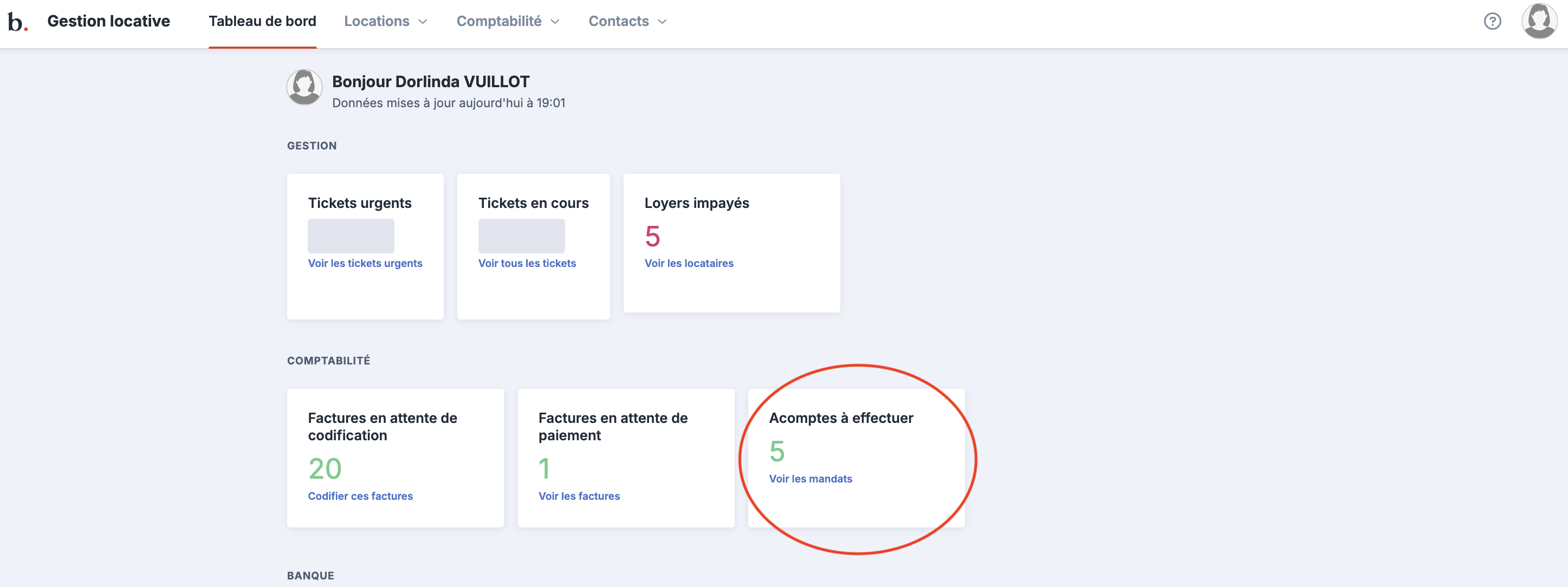 Votre "tableau de bord" fait remonter l'acompte à verser au bailleur à la date programmée.