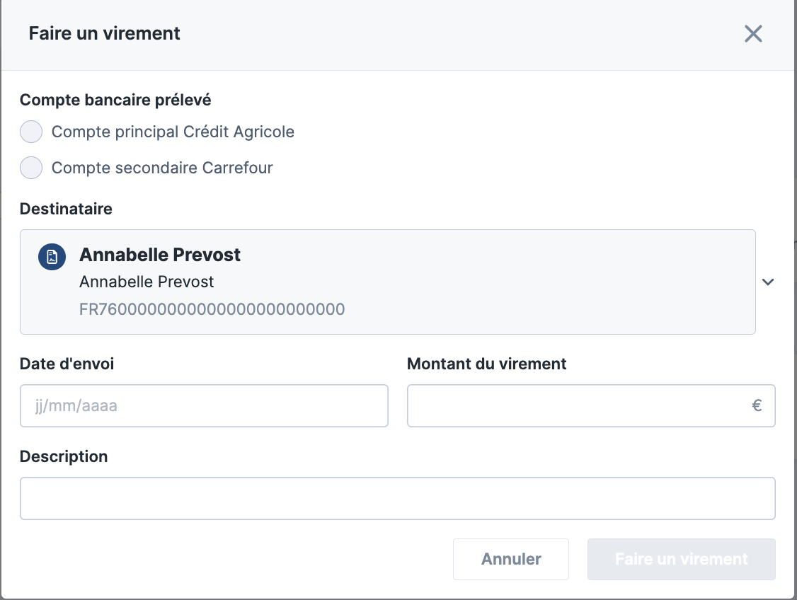 Cliquez sur le bouton “Faire un virement” pour générer l’ordre de virement.