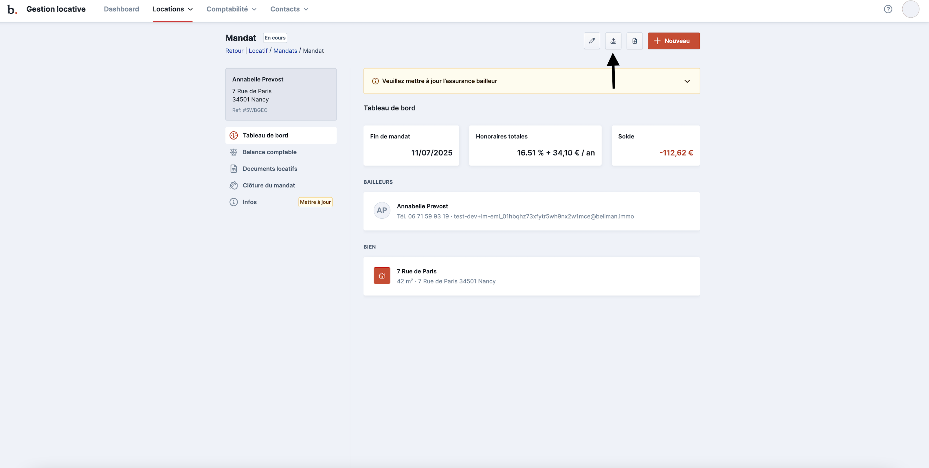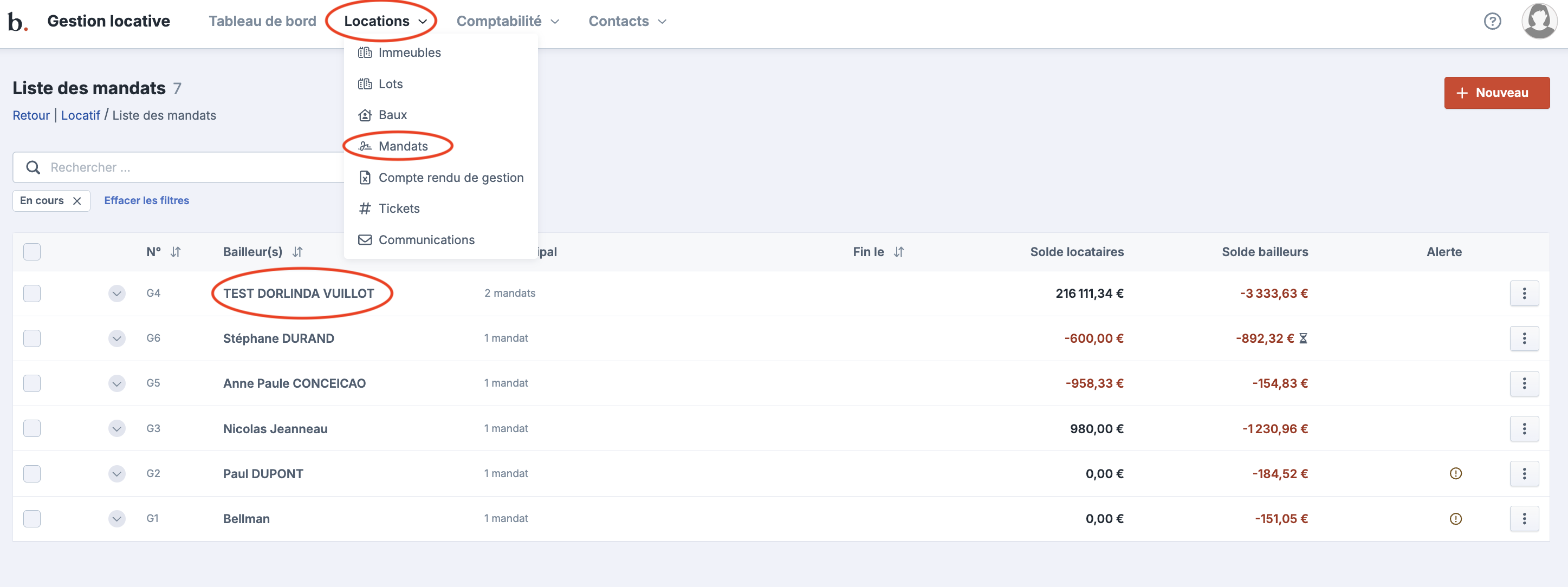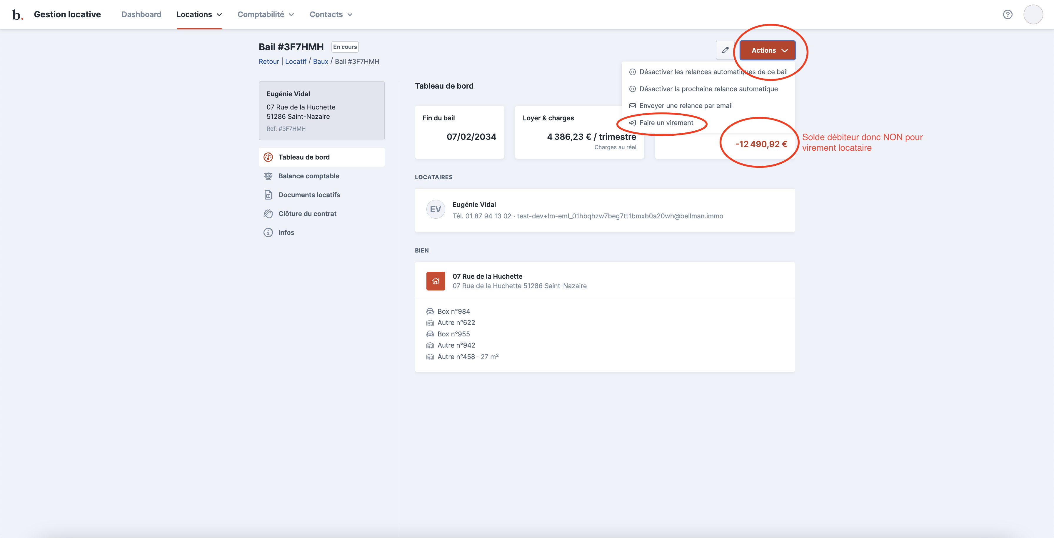 Contrôler le solde du compte locataire (créditeur = ok pour virement / débiteur = non pour virement)