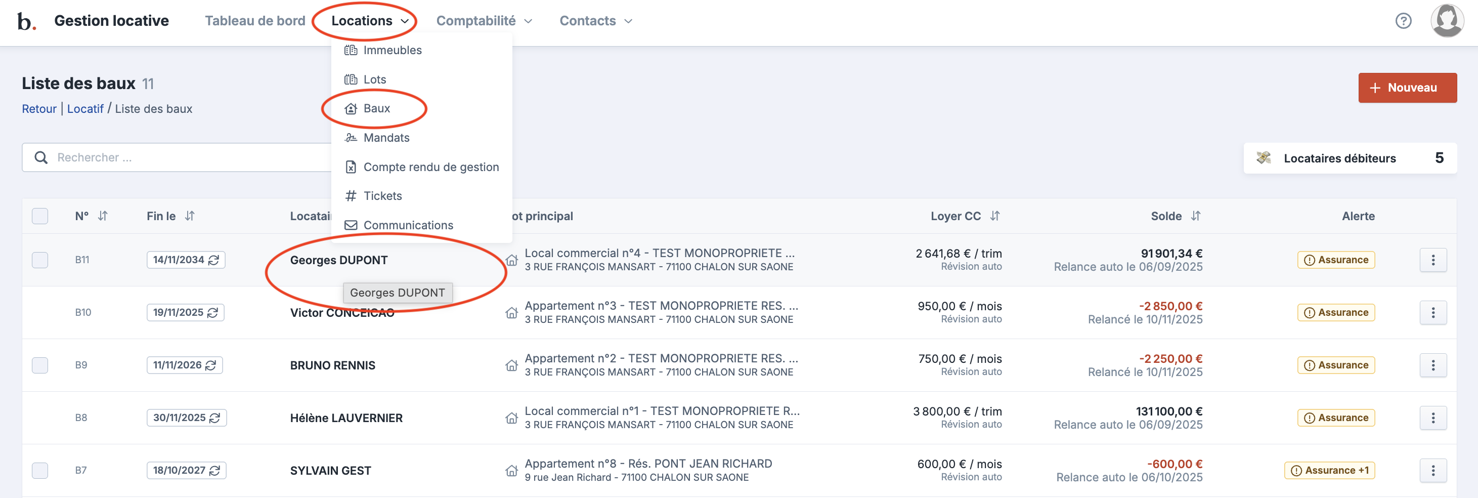 Cliquez sur “Baux”