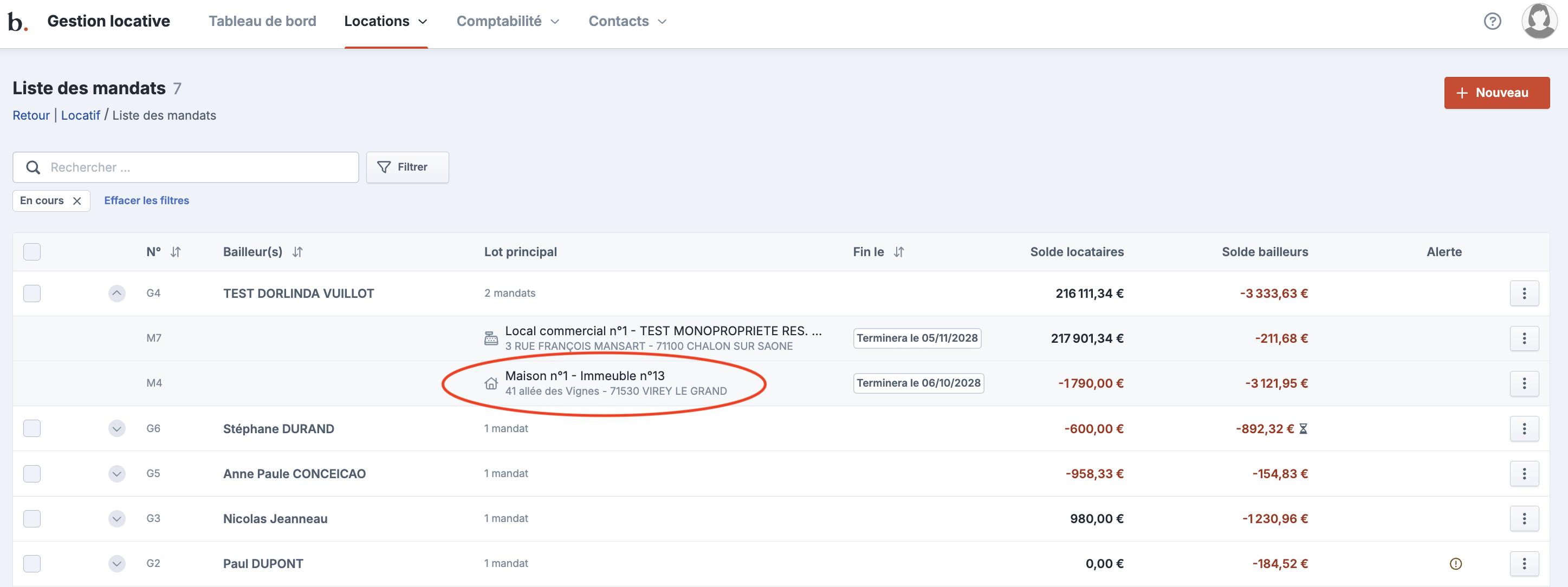 Sélectionnez le "bailleur" et "mandat" pour lequel vous souhaitez paramètrer un acompte mensuel récurrent