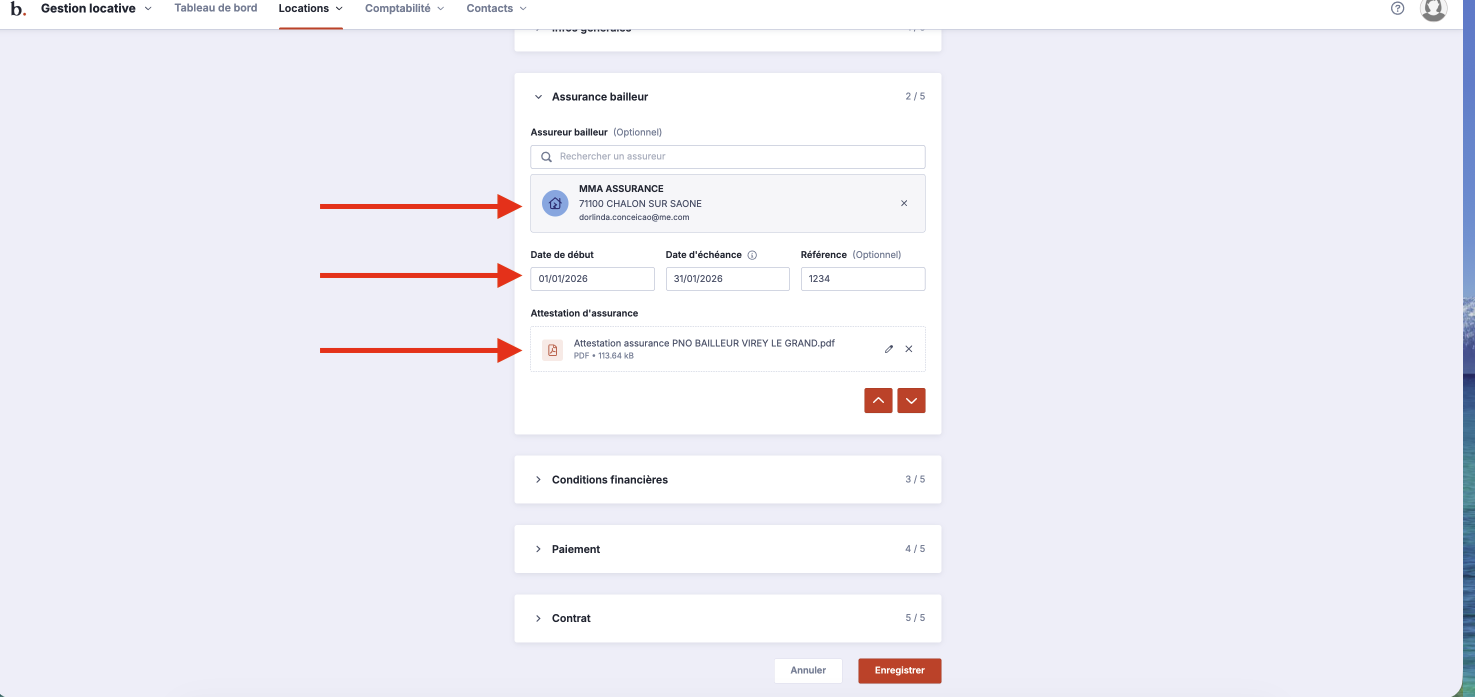 Renseignez l'onglet “Assurance bailleur” PNO ou MRI si monopropriété.