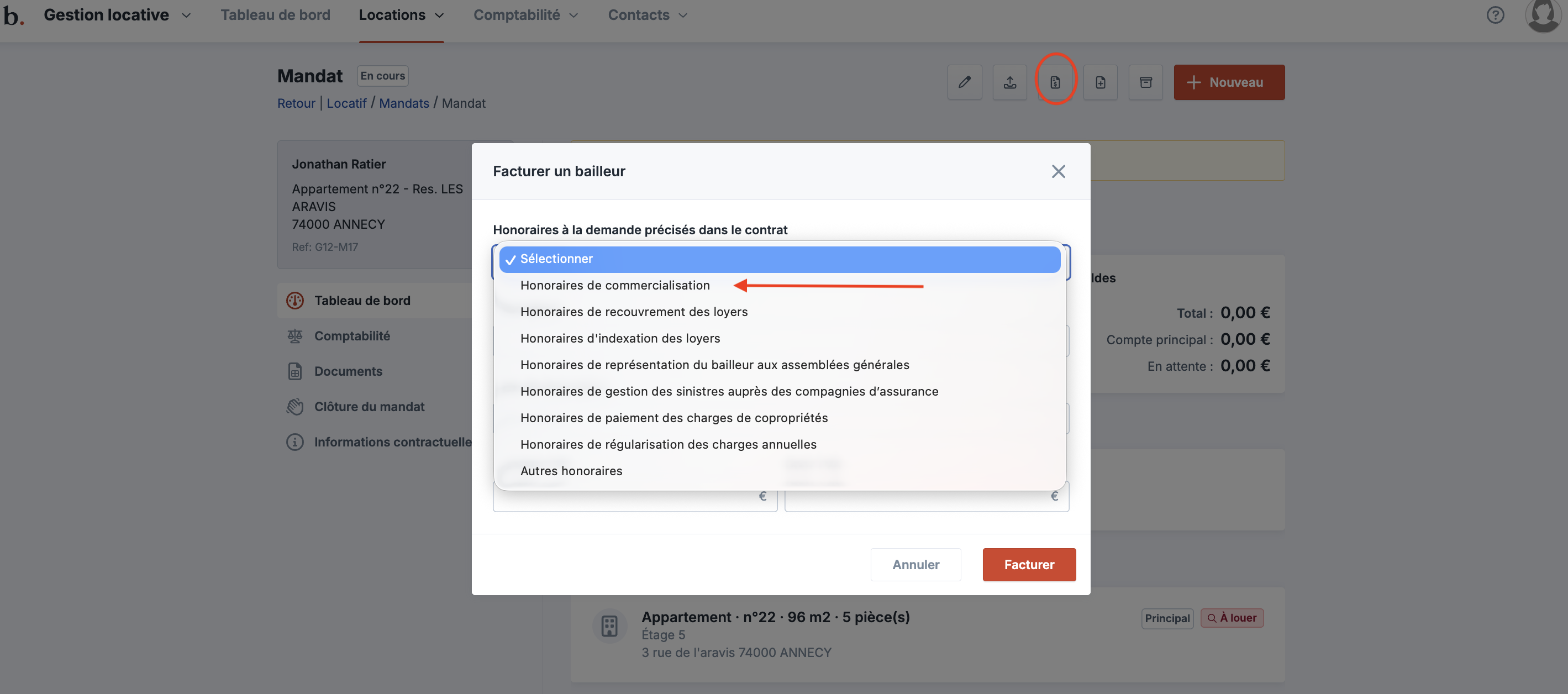 💡Vous pourrez facturer vos honoraires prédéfinis dans votre mandat par le biais du TDB du Mandat dès lors que vous aurez finaliser la création.