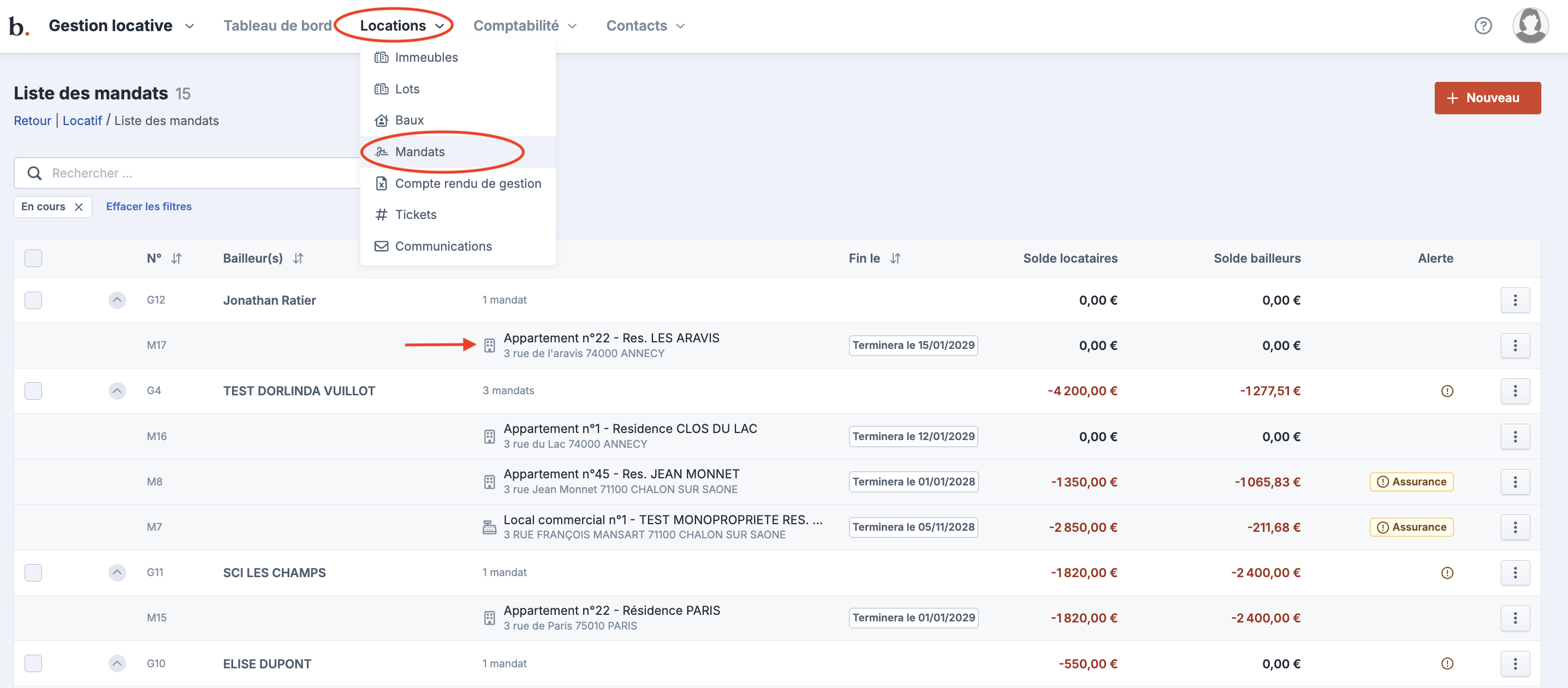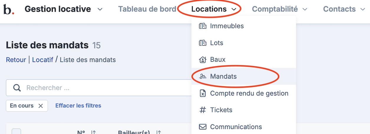 Sélectionner le mandat en cliquant sur “le lot ”.