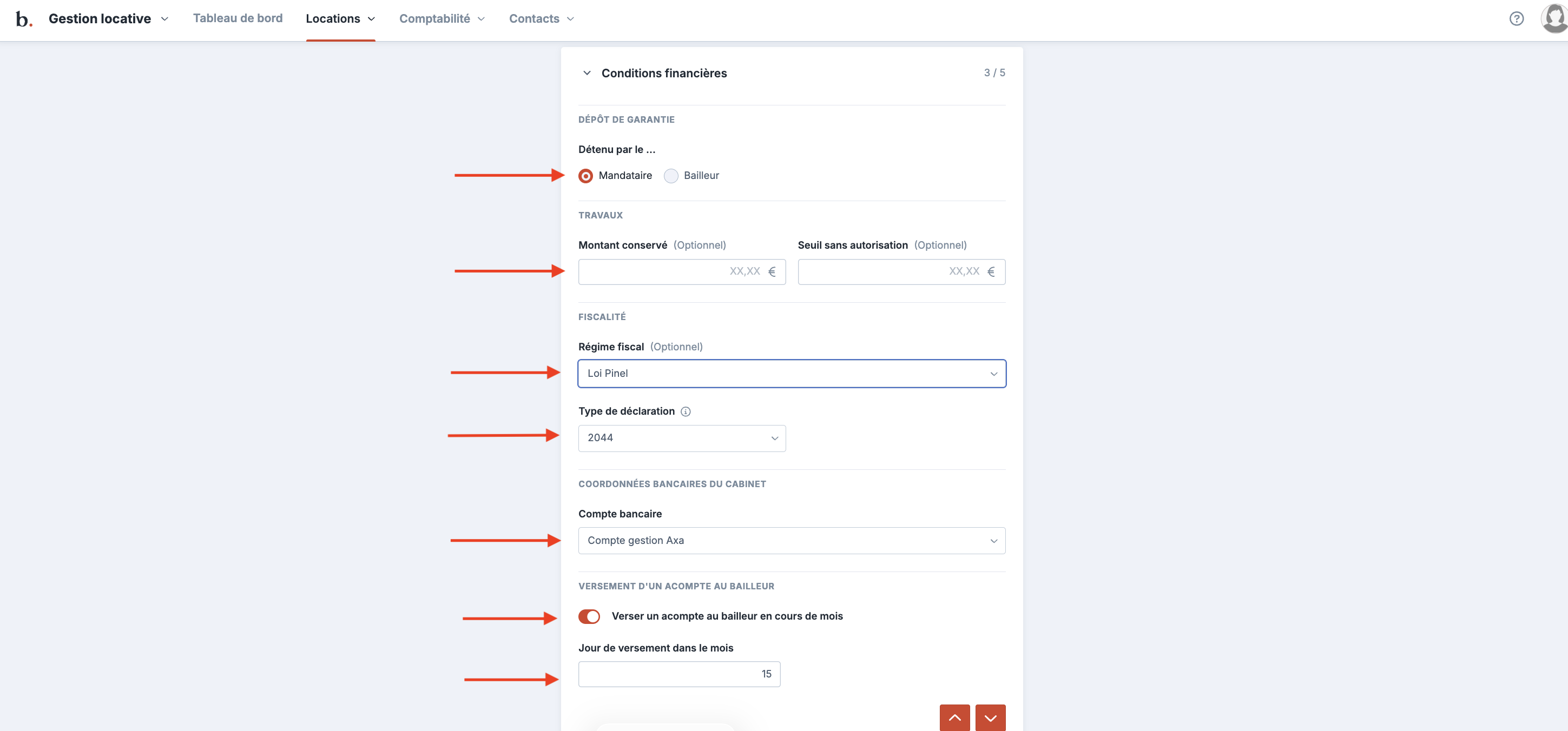 💡La partie "Fiscalité" se renseigne en automatique en fonction de la typologie du bailleur .