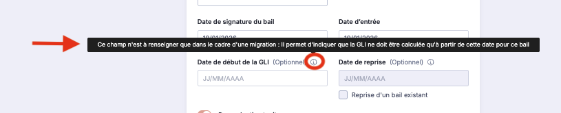 💡 La date de début de GLI est à renseigner uniquement en cas de "Migration" ou "Nouveau mandat avec locataire en place".