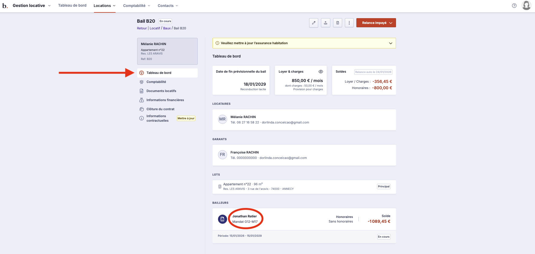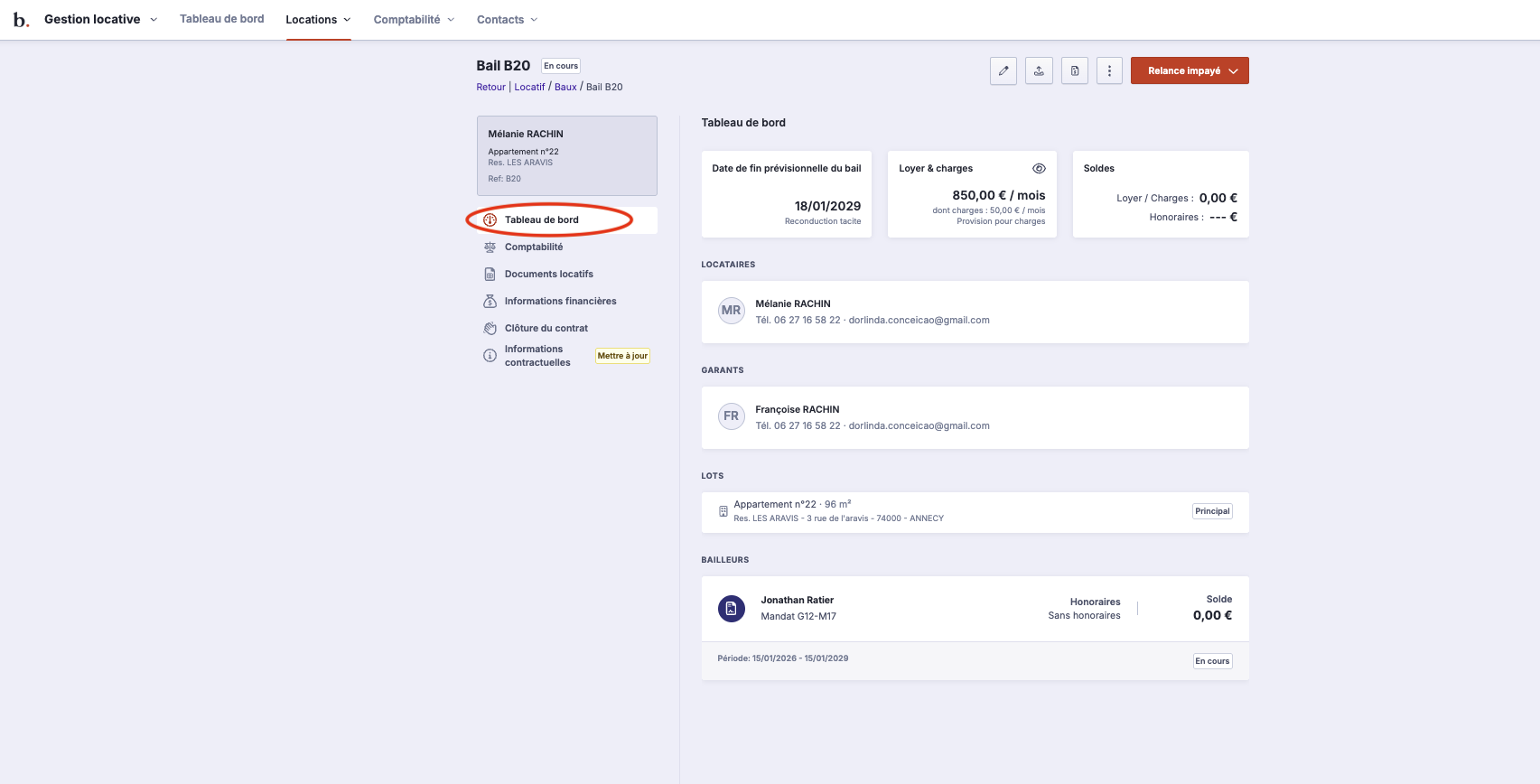 💡Le TDB (Tableau de bord) du bail vous permet de :