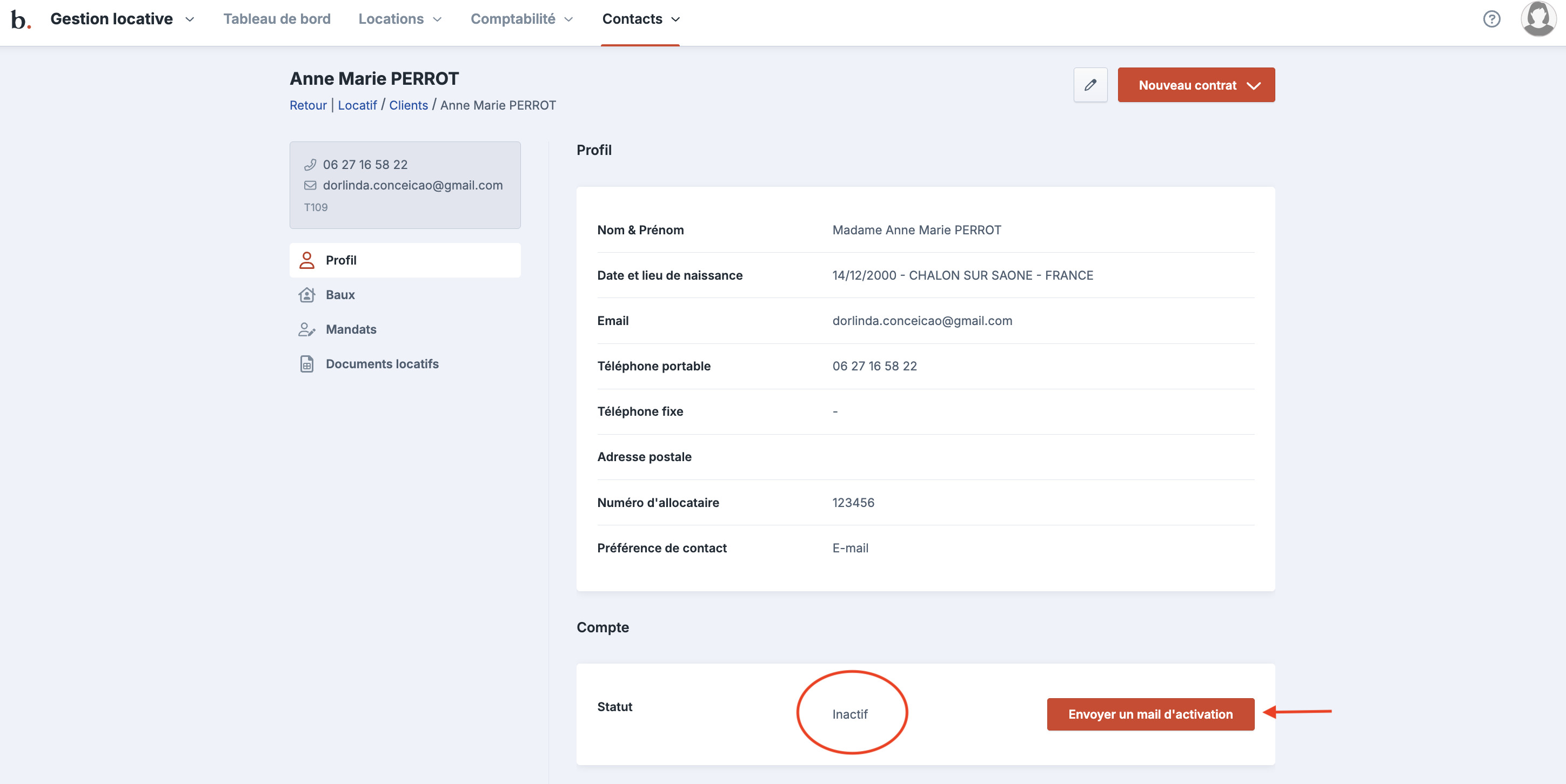 Envoyer un mail d'activation de l'espace client à votre locataire